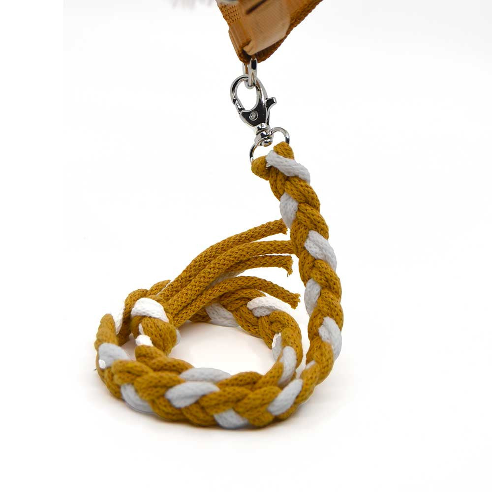 Une longe assortie : Tressée bicolore en blanc et miel, elle complète parfaitement le licol et rappelle la robe de ton cheval.